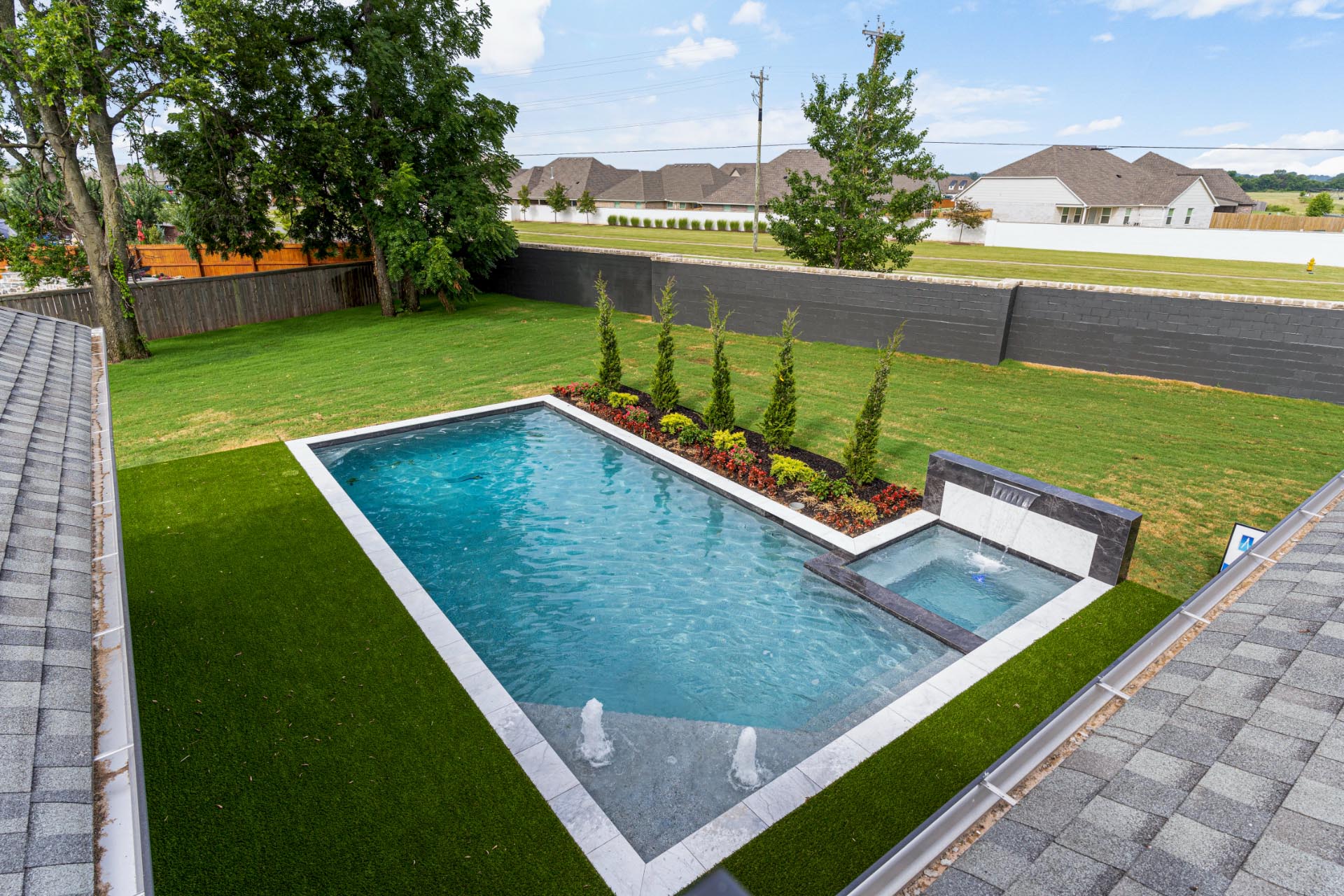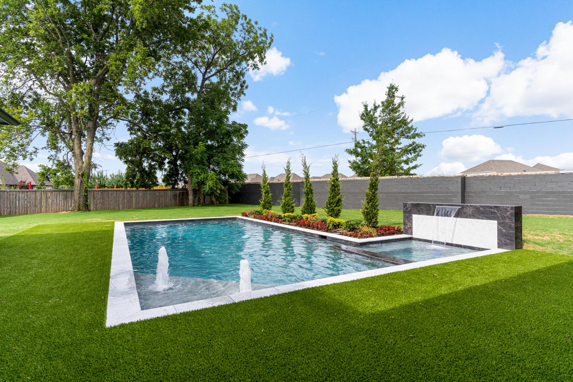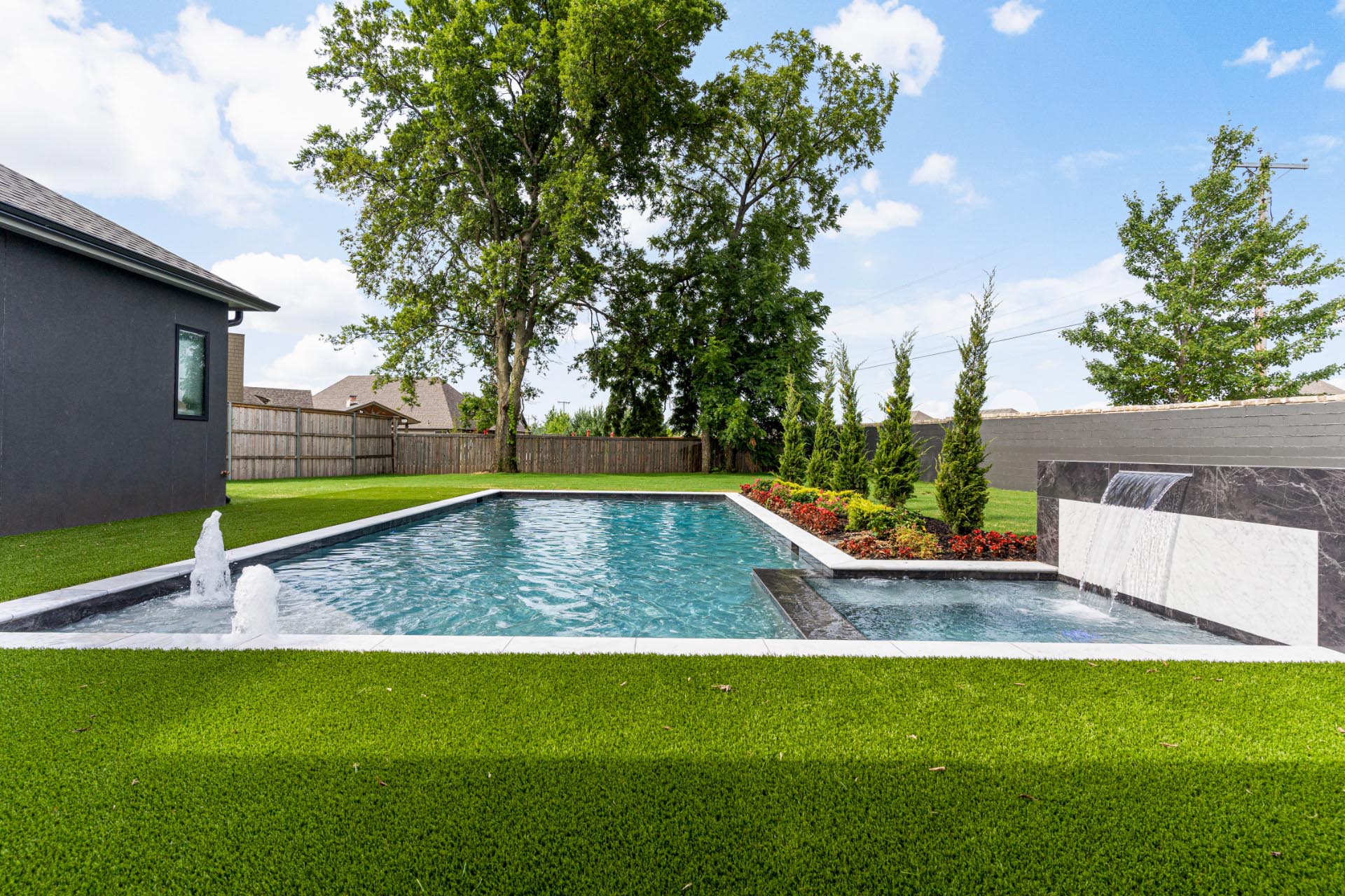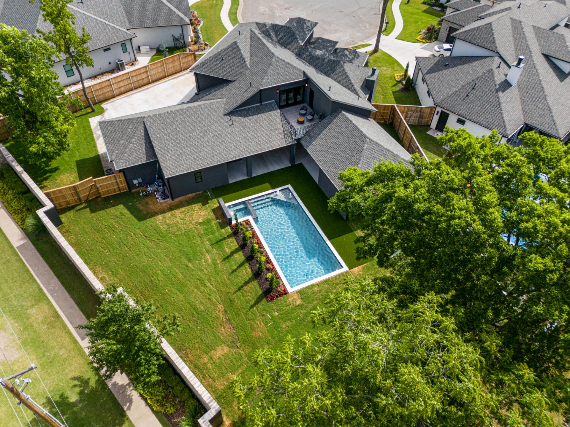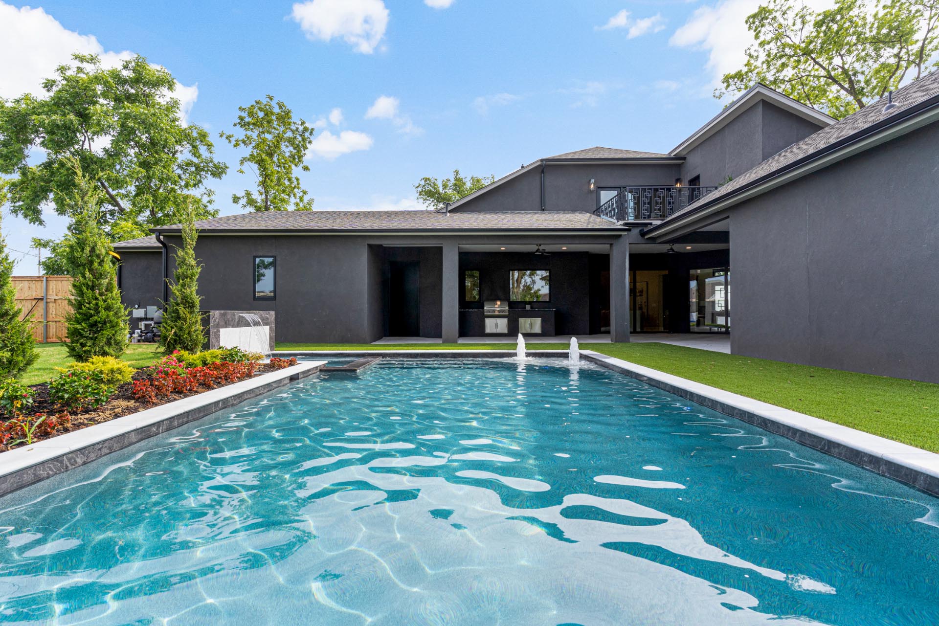 Full concept outdoor living design with pool & kitchen